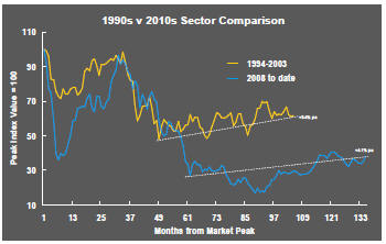 Relative stability in sector prices suggests a chance for individual companies genuinely adding value through development success to see their share prices move higher. This was the experience in the late 1990s and early 2000s.