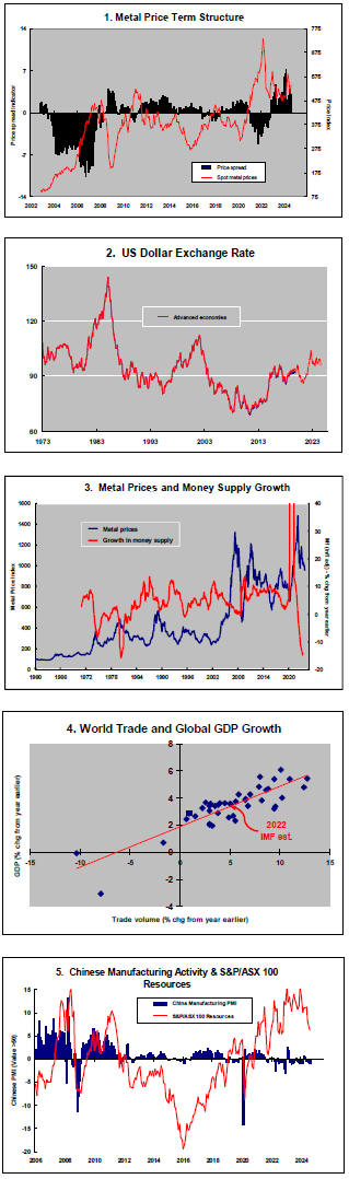 The greatest danger to a metal price cycle comes when monetary policy settings begin to tighten in response to higher inflation with an adverse effect on output growth and investment spending.