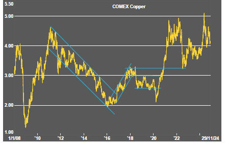 In the absence of a market force equivalent to the industrialisation of China, which precipitated an upward break in prices in the early 2000s, a moderate upward drift in sector equity prices over the medium term is likely to persist.