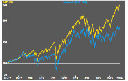 In the absence of a market force equivalent to the industrialisation of China, which precipitated an upward break in prices in the early 2000s, a moderate upward drift in sector equity prices over the medium term is likely to persist.