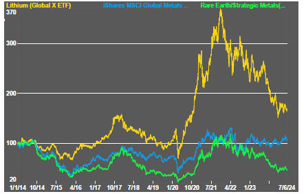 Then, modest sector price gains occurred in the midst of sometimes highly disruptive macro conditions while the China growth theme was still building steam.