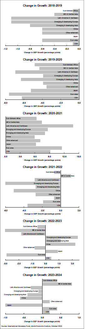 Positive variations in IMF growth forecasts during 2021 have given way to downward revisions as the negative forces detrimentally affecting growth prior to the onset of the COVID-19 pandemic reassert themselves and as emergency policy measures supporting growth are withdrawn.