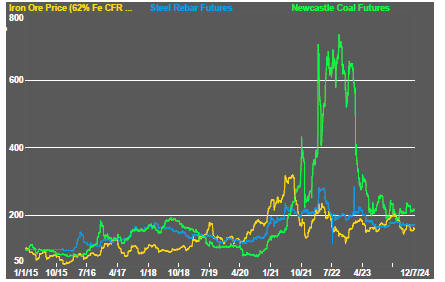 Then, modest sector price gains occurred in the midst of sometimes highly disruptive macro conditions while the China growth theme was still building steam.