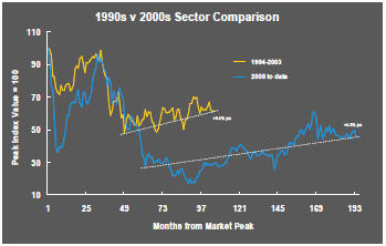 Relative stability in sector prices suggests a chance for individual companies genuinely adding value through development success to see their share prices move higher. This was the experience in the late 1990s and early 2000s.