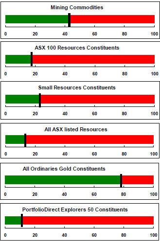 With a median decline in prices of ASX-listed resources companies since the beginning of 2011 of 89% (and 30% of companies suffering a decline of more then 95%), the majority of stocks remain prone to strong 'bottom of the cycle' leverage in response to even slight improvements in conditions.