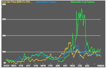 In the absence of a market force equivalent to the industrialisation of China, which precipitated an upward break in prices in the early 2000s, a moderate upward drift in sector equity prices over the medium term is likely to persist.