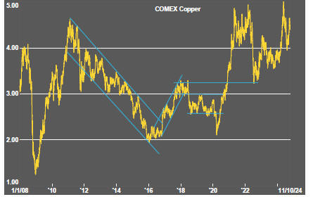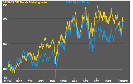 In the absence of a market force equivalent to the industrialisation of China, which precipitated an upward break in prices in the early 2000s, a moderate upward drift in sector equity prices over the medium term is likely to persist.