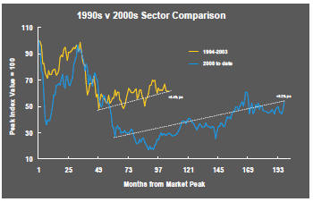 Relative stability in sector prices suggests a chance for individual companies genuinely adding value through development success to see their share prices move higher. This was the experience in the late 1990s and early 2000s.