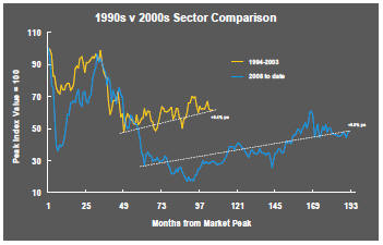 Relative stability in sector prices suggests a chance for individual companies genuinely adding value through development success to see their share prices move higher. This was the experience in the late 1990s and early 2000s.