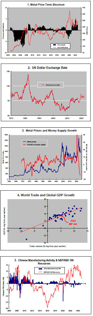 The greatest danger to a metal price cycle comes when monetary policy settings begin to tighten in response to higher inflation with an adverse effect on output growth and investment spending.