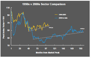 Relative stability in sector prices suggests a chance for individual companies genuinely adding value through development success to see their share prices move higher. This was the experience in the late 1990s and early 2000s.