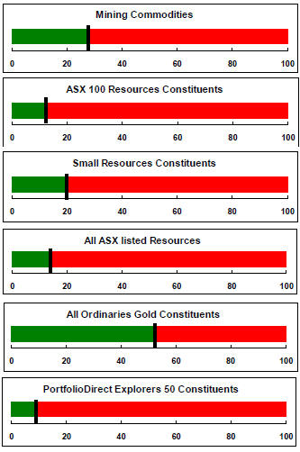 With a median decline in prices of ASX-listed resources companies since the beginning of 2011 of 89% (and 30% of companies suffering a decline of more then 95%), the majority of stocks remain prone to strong 'bottom of the cycle' leverage in response to even slight improvements in conditions.
