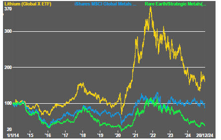 Then, modest sector price gains occurred in the midst of sometimes highly disruptive macro conditions while the China growth theme was still building steam.