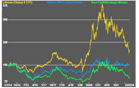 Then, modest sector price gains occurred in the midst of sometimes highly disruptive macro conditions while the China growth theme was still building steam.