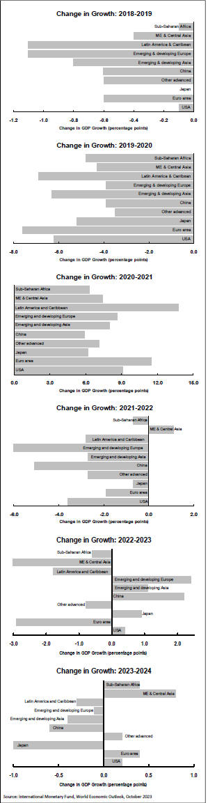 Positive variations in IMF growth forecasts during 2021 have given way to downward revisions as the negative forces detrimentally affecting growth prior to the onset of the COVID-19 pandemic reassert themselves and as emergency policy measures supporting growth are withdrawn.