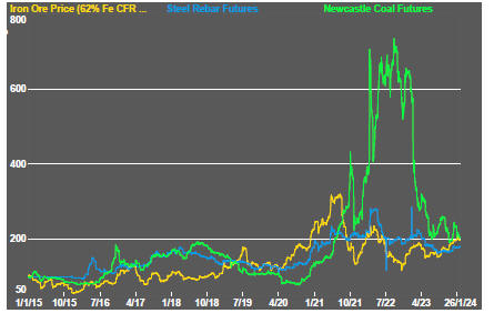 In the absence of a market force equivalent to the industrialisation of China, which precipitated an upward break in prices in the early 2000s, a moderate upward drift in sector equity prices over the medium term is likely to persist.