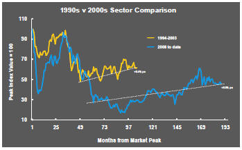 Relative stability in sector prices suggests a chance for individual companies genuinely adding value through development success to see their share prices move higher. This was the experience in the late 1990s and early 2000s.