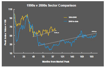 Relative stability in sector prices suggests a chance for individual companies genuinely adding value through development success to see their share prices move higher. This was the experience in the late 1990s and early 2000s.