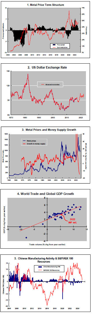 The greatest danger to a metal price cycle comes when monetary policy settings begin to tighten in response to higher inflation with an adverse effect on output growth and investment spending.
