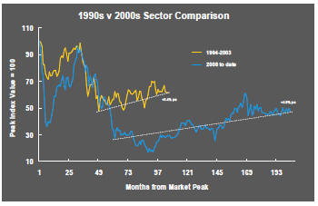 Relative stability in sector prices suggests a chance for individual companies genuinely adding value through development success to see their share prices move higher. This was the experience in the late 1990s and early 2000s.
