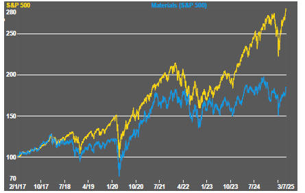 In the absence of a market force equivalent to the industrialisation of China, which precipitated an upward break in prices in the early 2000s, a moderate upward drift in sector equity prices over the medium term is likely to persist.