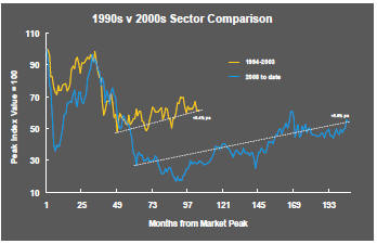 Relative stability in sector prices suggests a chance for individual companies genuinely adding value through development success to see their share prices move higher. This was the experience in the late 1990s and early 2000s.