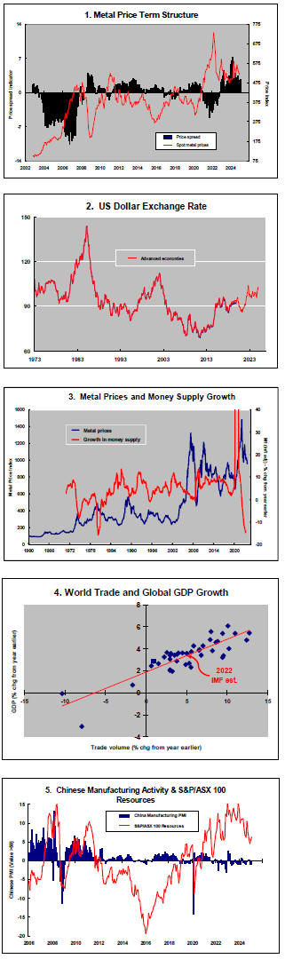 The greatest danger to a metal price cycle comes when monetary policy settings begin to tighten in response to higher inflation with an adverse effect on output growth and investment spending.