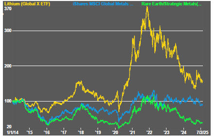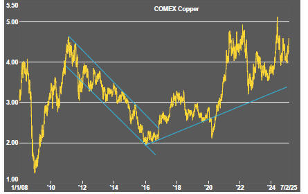 Then, modest sector price gains occurred in the midst of sometimes highly disruptive macro conditions while the China growth theme was still building steam.