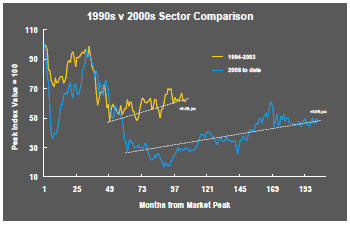 Relative stability in sector prices suggests a chance for individual companies genuinely adding value through development success to see their share prices move higher. This was the experience in the late 1990s and early 2000s.