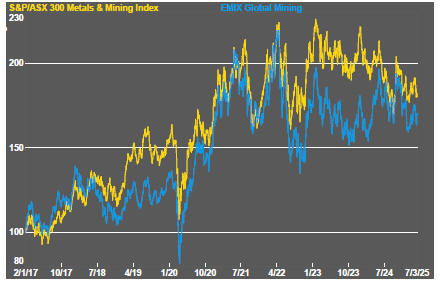 In the absence of a market force equivalent to the industrialisation of China, which precipitated an upward break in prices in the early 2000s, a moderate upward drift in sector equity prices over the medium term is likely to persist.