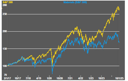 In the absence of a market force equivalent to the industrialisation of China, which precipitated an upward break in prices in the early 2000s, a moderate upward drift in sector equity prices over the medium term is likely to persist.