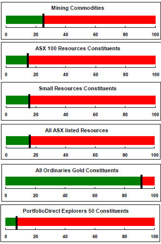 With a median decline in prices of ASX-listed resources companies since the beginning of 2011 of 89% (and 30% of companies suffering a decline of more then 95%), the majority of stocks remain prone to strong 'bottom of the cycle' leverage in response to even slight improvements in conditions.