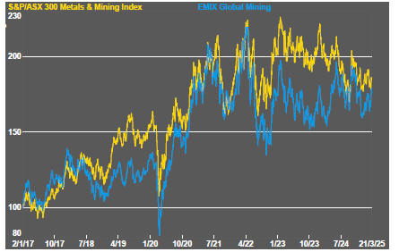 In the absence of a market force equivalent to the industrialisation of China, which precipitated an upward break in prices in the early 2000s, a moderate upward drift in sector equity prices over the medium term is likely to persist.