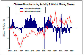 In the absence of an effect on the real economy, the unprecedentedly strong infusion of global liquidity has helped stoke asset prices, including the prices of those commodities of particular importance to the mining industry.