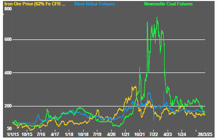 In the absence of a market force equivalent to the industrialisation of China, which precipitated an upward break in prices in the early 2000s, a moderate upward drift in sector equity prices over the medium term is likely to persist.