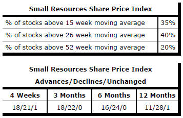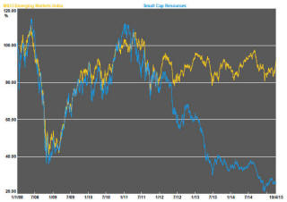 The apparently improved risk appetite among global equity investors has not led to a more favorable view about the resources industry. In the past week, the ASX small resources share price index rose 0.2%. The S&P/ASX 100 resources index rose 1.7%. At the same time, the MSCI emerging markets index moved higher by 4.0%.