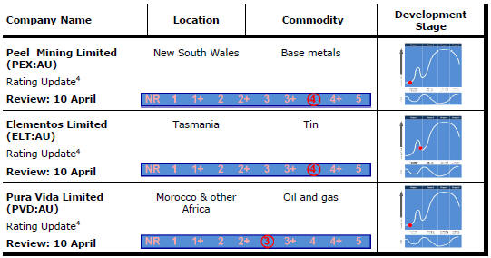 Stocks with relatively low ratings are regarded as more risky (i.e. less likely to achieve their exploration or development goals over a reasonable investment time horizon) than those with relatively high ratings.