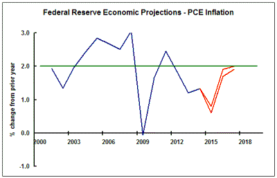 The forecasts suggest that the 2% inflation target will not actually be reached until 2017.  The committee has said it needs to be confident that inflation will move.  Presumably, if the views of the members eventuate, the Fed will not be absolutely confident for another two years.