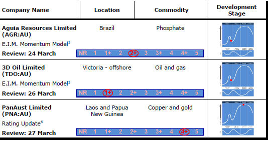 1. The E.I.M. Capital Managers share price momentum model is underpinned by analytical work on sector share price movements which suggests that stocks in the sector are prone to experience relatively brief periods of strong outperformance interspersed with lengthy periods during which share price movements revert to the norm (i.e. display returns closer to the sector median). The momentum model seeks to identify those stocks that are in the transition between median performance and a material upward move in share prices. The rating given to stocks identified from the momentum model implies a view about whether the evident investor interest is warranted (in which case a company receives a high numerical score) or has been misplaced (warranting a low score).