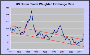 The absence of a growth acceleration among the major economic regions other than the USA is contributing to the flagging momentum. A stronger US dollar is also imparting a downward bias to US dollar denominated prices presently. This is looking less like a temporary move than a multiyear change of direction.